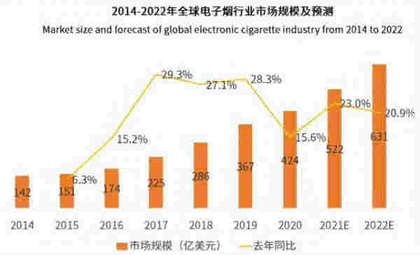 在中國強大制造業支撐下,電子煙快速發展,目前我國已是全球最大電子煙制造地。數據顯示,2013年中國電子煙市場規模為5.5億元,2020年市場規模增至83.8億元,八年年均復合增長率達到了72.5%。當前中國煙民規模世界排名第一,但電子煙滲透率卻不足1%,說明中國電子煙行業發展空間廣闊。