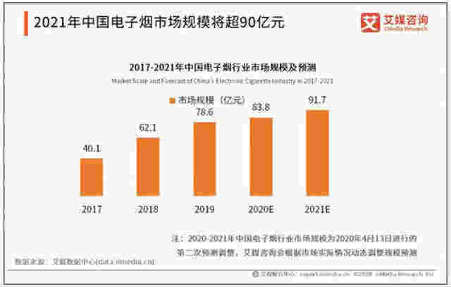 相關報告顯示,2016年,中國電子煙市場規模約不到50億元,同年國內煙草行業全年實現實現工商稅利10795億元,全年上繳財政總額10006億元;一項來自艾媒咨詢的調查顯示,2019年中國電子煙市場規模將達78.6億元,2021年這一數據則或有望超過90億元。巨大的市場空間與海量的潛在用戶,顯然是一個利好消息。