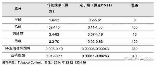 2014 年《控煙》中發表 論文證明:電子煙煙霧中一些有毒成分要顯著低于傳統煙霧,差距在 9-450 倍;