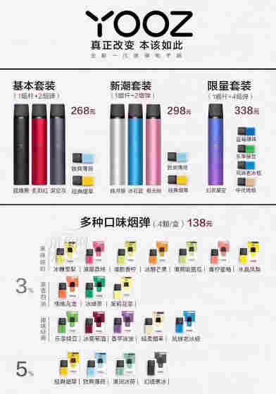 而且YOOZ的煙彈一般是一盒四個,官方售價為138/盒。此外,YOOZ還有一款Mini煙,官方售價僅為9.9元。其中包含一個240mAh電池容量的煙桿和一個USB充電器??偟膩碚f,這款的確非常便宜,而yooz推出這種低價產品也是為了降低體驗門檻和換品牌成本,反正成本就只要九塊九,丟了也不可惜。
