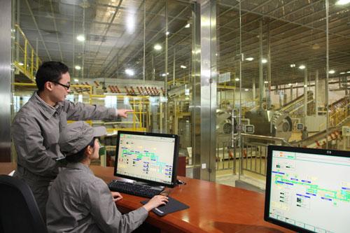 走進昆明卷煙制絲車間的一剎那,我立刻被眼前的一幕幕所震驚:這里的車間真大,這里的自動化程度真高,車間里機器聲可聞,卻很少看到工人,振動輸送機有條不紊地輸送著煙葉,多臺無人操作的“機械手”在空中舞蹈著,操作顯示屏上跳動的數據實時監控著生產情況……