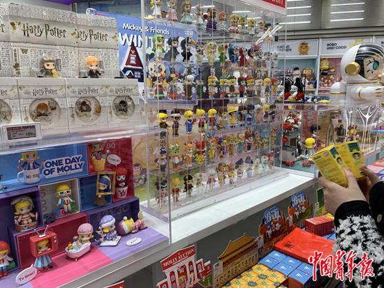 據店員介紹,店里的盲盒中銷量最好的是米老鼠系列,春節期間每天都會售罄,因為迪士尼動畫片陪伴了大多數人的童年,里面的卡通形象深入人心;其次是哈利·波特系列,相關影視作品和書籍的流行使消費者對這一系列的玩偶造型備感親切。