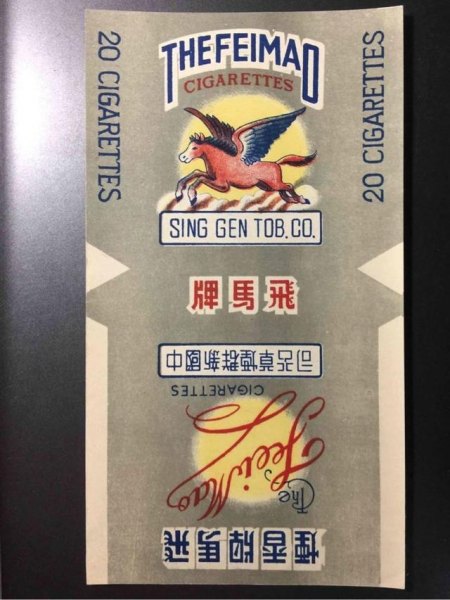 香煙的標志是一只長著翅膀的駿馬,從蹄子的狀態來看,這匹馬仍在奔跑。