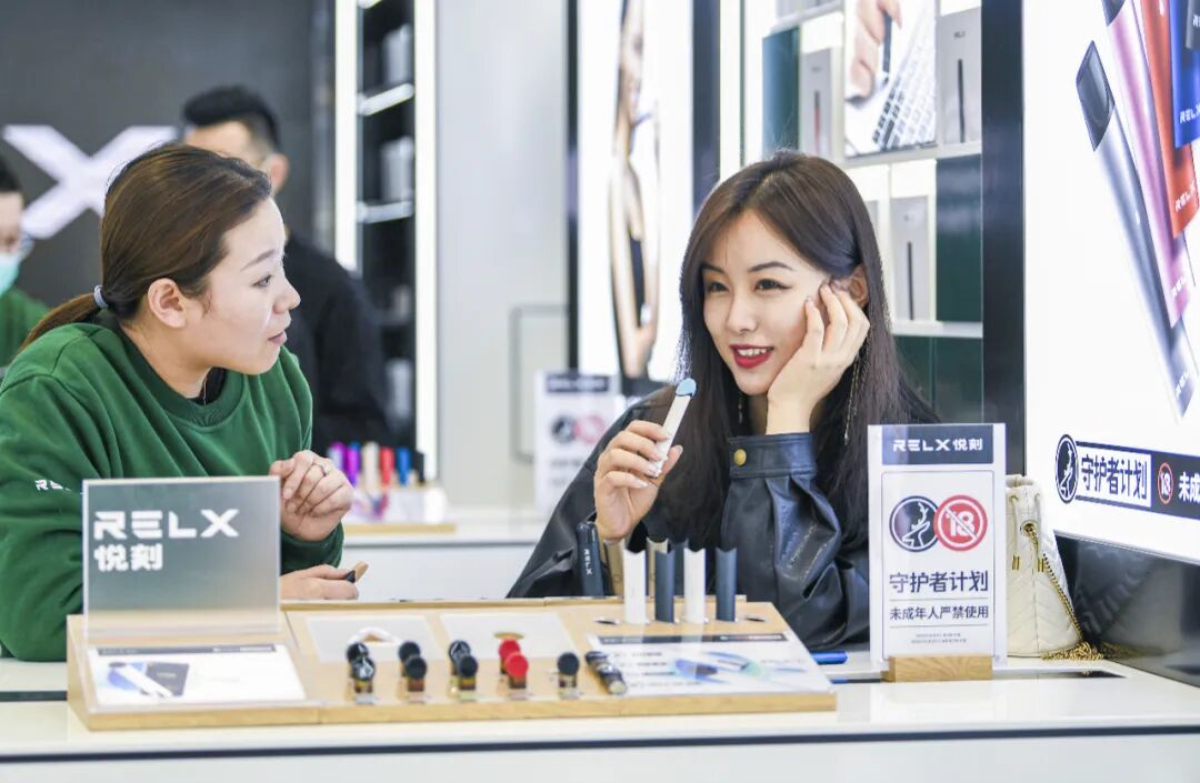 消費者在RELX悅刻專賣店試用新產品