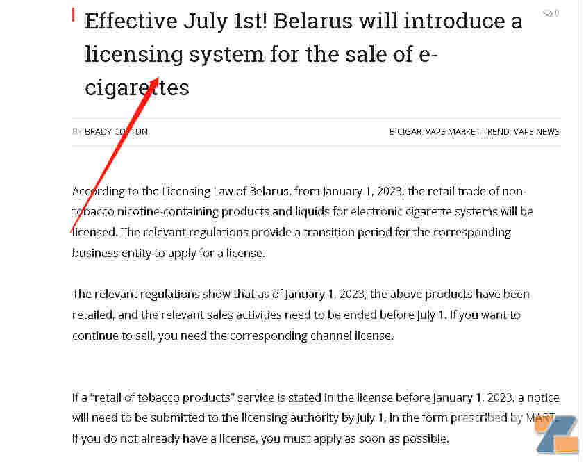 歐洲情報獲悉,東歐白俄羅斯進入電子煙銷售許可證時期。自2023年7月1日起,白俄羅斯實行電子煙銷售許可制度,要求不符合法律規定的商業實體不得零售含有尼古丁的非煙草產品和電子煙;同時提醒相關經營主體,如果沒有繼續銷售的計劃,必須在7月1日之前清理庫存,否則將面臨處罰。其實,根據白俄羅斯許可法,自2023年1月1日起,電子煙系統用非煙草含尼古丁產品和液體的零售貿易將獲得許可。相關銷售活動需在7月1日之前結束,如想繼續銷售,需要相應的渠道牌照。