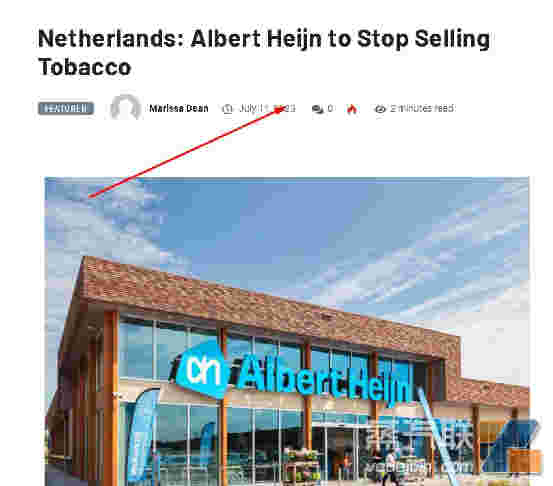 7月16日消息,近日荷蘭大型連鎖超市Albert Heijn將于2024年1月1日起停止銷售煙草產品(包括電子煙)。