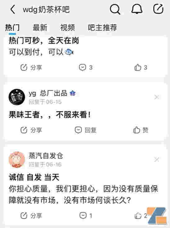 進入某社交網站的奶茶杯吧、wdg奶茶杯吧、奶茶杯杯碰吧,里面充斥著各種打廣告的帖子,“口味齊全”“質量和價格是成正比的”“真誠秒殺一切”,并配著電子煙的圖片,而在這些帖子下方,樓主則會直接打出自己的微信號。