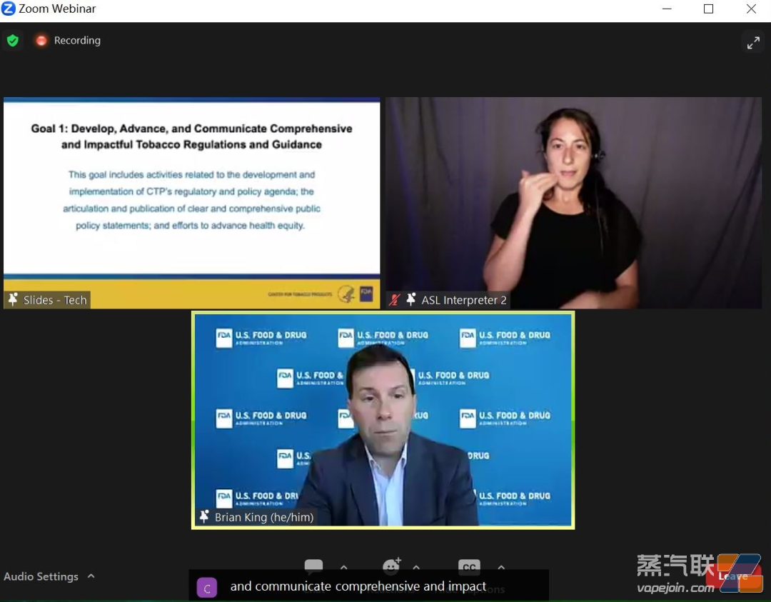 2023年8月22日北京時間時間晚上10點至23日凌晨3點半,美國FDA煙草產品中心(Center for Tobacco Products, CTP)舉行了關于制定5年戰略計劃的線上聽證會。該會議持續5個半小時,北京中銀(深圳)律師事務所鄭明偉律師團隊楊傲宇博士全程參加并在《聯邦公告》上發表了評論意見。