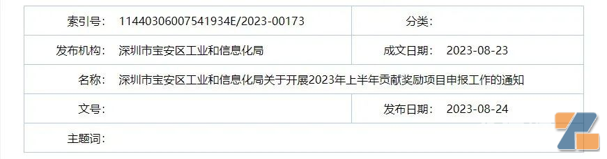 8月24日,深圳市寶安區工業和信息化局發布了《關于開展2023年上半年貢獻獎勵項目申報工作的通知》。通知稱,寶安區工業和信息化局現開展2023年上半年貢獻獎勵項目申報工作。