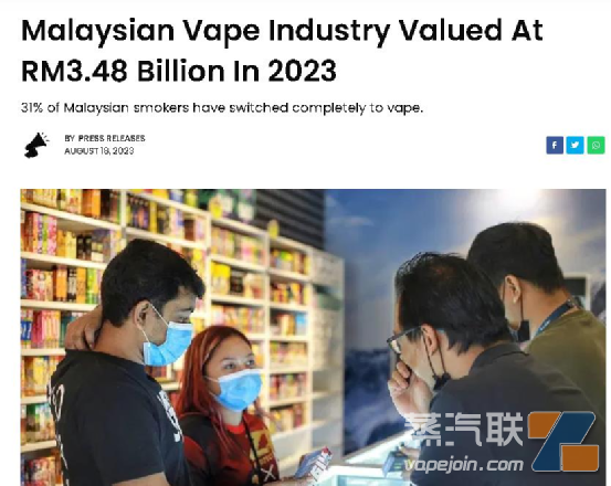 8月27日消息,近日,馬來西亞電子煙商會(MVCC)發布了《2023年馬來西亞電子煙產業研究》,該份研究報告顯示,隨著越來越多的卷煙使用者轉而使用電子煙,消費者人數也隨之增加,零售價值從2019年的22.7億令吉(約合人民幣35.6億元)激增約53%,預計到2023年將達到34.8億令吉(約合人民幣54.7億元)。
