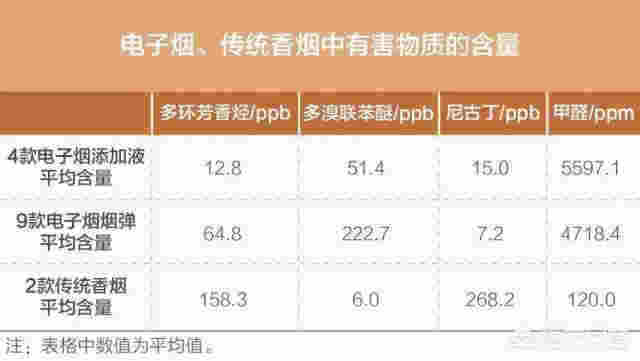 檢測結果顯示,電子煙中含有多環芳香烴、多溴聯苯醚、尼古丁和甲醛等多種有害成分。