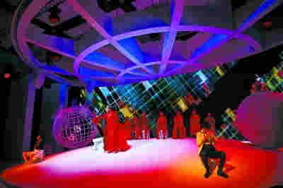 創作團隊“不遵循條條框框”的直接表現是,樂隊是自然聲,而歌劇演員使用了麥克風。傳統的歌劇演員對麥克風非常抵觸,但一個現實問題是,國家大劇院小劇場的空間并不大,缺乏傳統歌劇院的深度和距離感。王炳燃坦言:“傳統歌劇廳有樂池,樂隊的聲音經過過濾,比較平衡,但小劇場的樂隊聲音是裸露在觀眾面前的,會導致人聲偏弱的情況?!睆埶囓敖忉屃烁鑴⊙輪T使用了麥克風的另一重要原因,“演員有大量的臺詞,讓小朋友們能理解,一定要用很清楚的聲音?!睘榱吮M可能讓樂隊的自然聲和歌劇演員的麥克風聲融合,張藝馨在樂隊中增加了電子合成器,用電聲的高頻率平衡樂隊的自然聲。