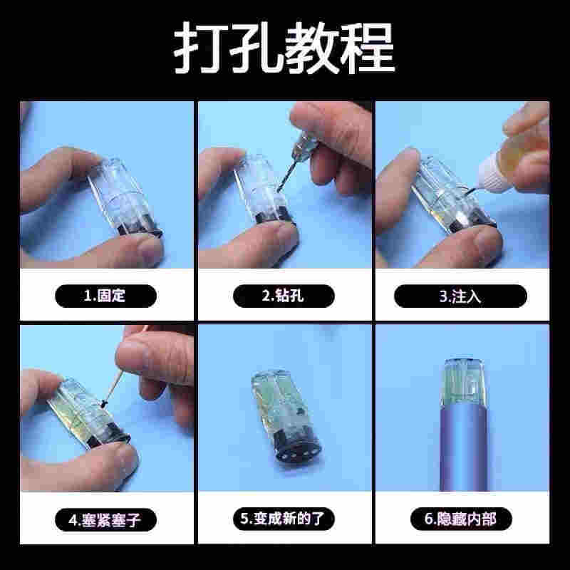 小煙也是可以打孔注油的,也可以在某寶上輸入鉆孔注油器,直接可以查到下面是打孔注油的教程圖