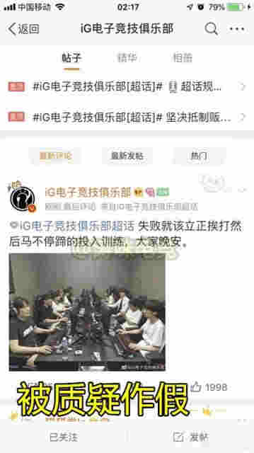而在賽后,IG官方發了一張隊員們刻苦訓練的照片,卻沒能換來粉絲們的體諒,反而被別人指出這張照片是之前拍的,疑似造假~~