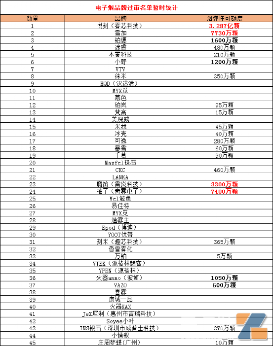 按照門店的普遍反饋,1個月過去,國標經銷零售60%都是1萬以下收入,77%賣得很差,入不敷出者不少,這“當頭棒”,日子不容易。 這里讓我們關注的是,到底品牌端如何? 有人過審難,但有新罕見品牌也過審,這是新景象。 杭州SSSO電子煙關門,很少聽見到的廣州“莊周夢蝶”品牌竟然過審了,這就是當下電子煙過審的“景象”。 仔細看了下數據,10月份整整1個月,過審的電子煙品牌和生產許可證都很少,而10-11月份整體大概核心還是“消費稅”。 更令人驚訝的是,因為消費稅,看重納稅潛力,一些地方政府已經在招商電子煙企業,有些地方政府甚至提出可以免費出地,政府還可以投資入股,看來后面的電子煙產業也會在生態方面變革。 目前來看,已經45個品牌過審,已經有59款煙具和137款煙彈通過了國標審評。 (至今過審名單統計) 這次剛剛過審的為莊周夢蝶。資料顯示,廣州匯碩環??萍加邢薰究赡芟登f周夢蝶該品牌申請方,過審情況為1款煙具和1款煙彈,預測其生產規模煙彈10萬顆左右。