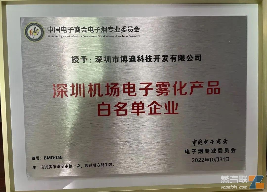 近日,經過深圳機場物流公司、國際貨站、安檢部、民航二所和上化院等五大部門嚴苛的審核,博迪順利通過了深圳機場白名單企業認定審核,榮獲“深圳機場電子霧化產品白名單企業”資質。