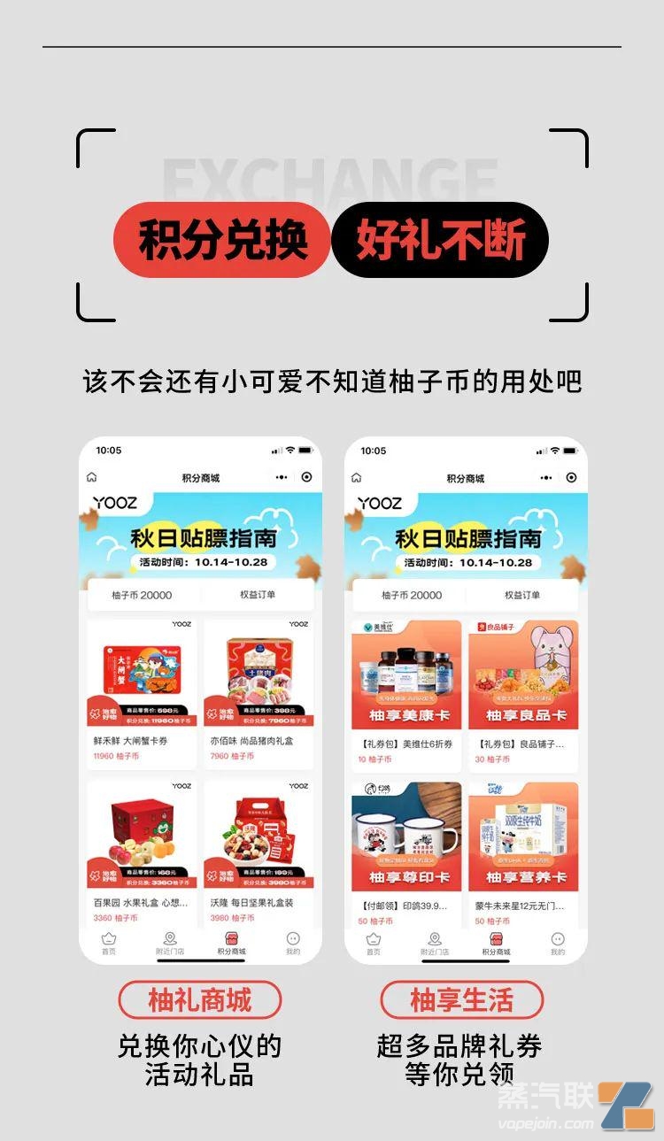 昨日,YOOZ柚子官方微信公眾號【柚子會員】發布了一篇內容“每一次升級與改變,都只為我們更好的遇見”,展示了目前線下電子煙門店新國標口味的使用、掃碼積分以及日常積分兌換好禮的場景。