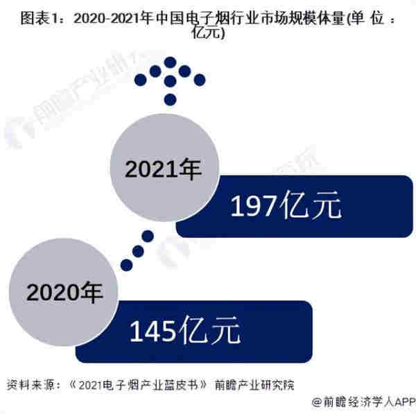電子煙誕生已有近20年,但從小眾亞文化走向大眾生活卻只是近5年的事。隨著近期各類監管政策發布,中國電子煙行業也站重要的歷史節點。2021年12月17日,在第五屆國際電子煙產業高峰論壇上,電子煙行業媒體卷卷智庫與電中國電子商會電子煙行業委員會在論壇上發布了《2021電子煙產業藍皮書》。根據《2021電子煙產業藍皮書》的數據,2021年中國電子煙行業的市場規模達到了197億元,同比增長36%。