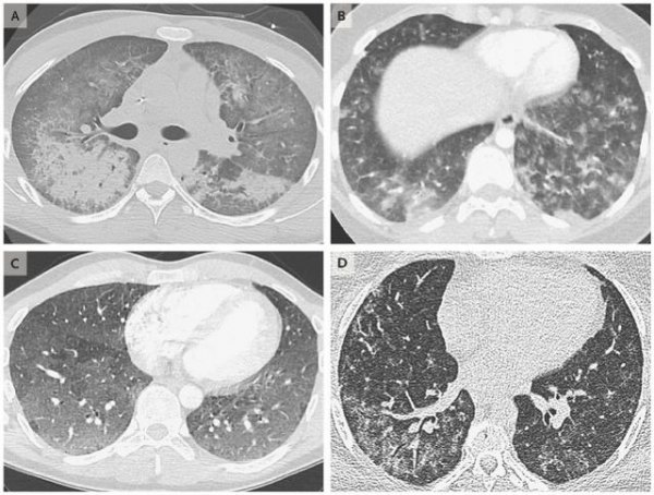 患者一開始感覺氣短,隨后迅速惡化,出現咳嗽、異常疼痛、反胃和嘔吐等癥狀。所有患者都需要額外的氧氣協助呼吸,其中很多人用上了呼吸管甚至呼吸機,情況最糟糕的患者甚至需要儀器將氧氣從體外輸送進血管。